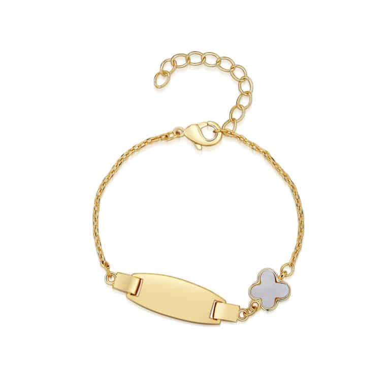 צמיד מצופה זהב עם טס זהב לחריטה של שם בשילוב פרפר צדף