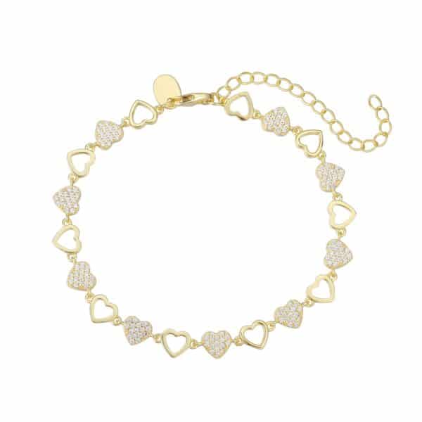 צמיד לבבות משובצים