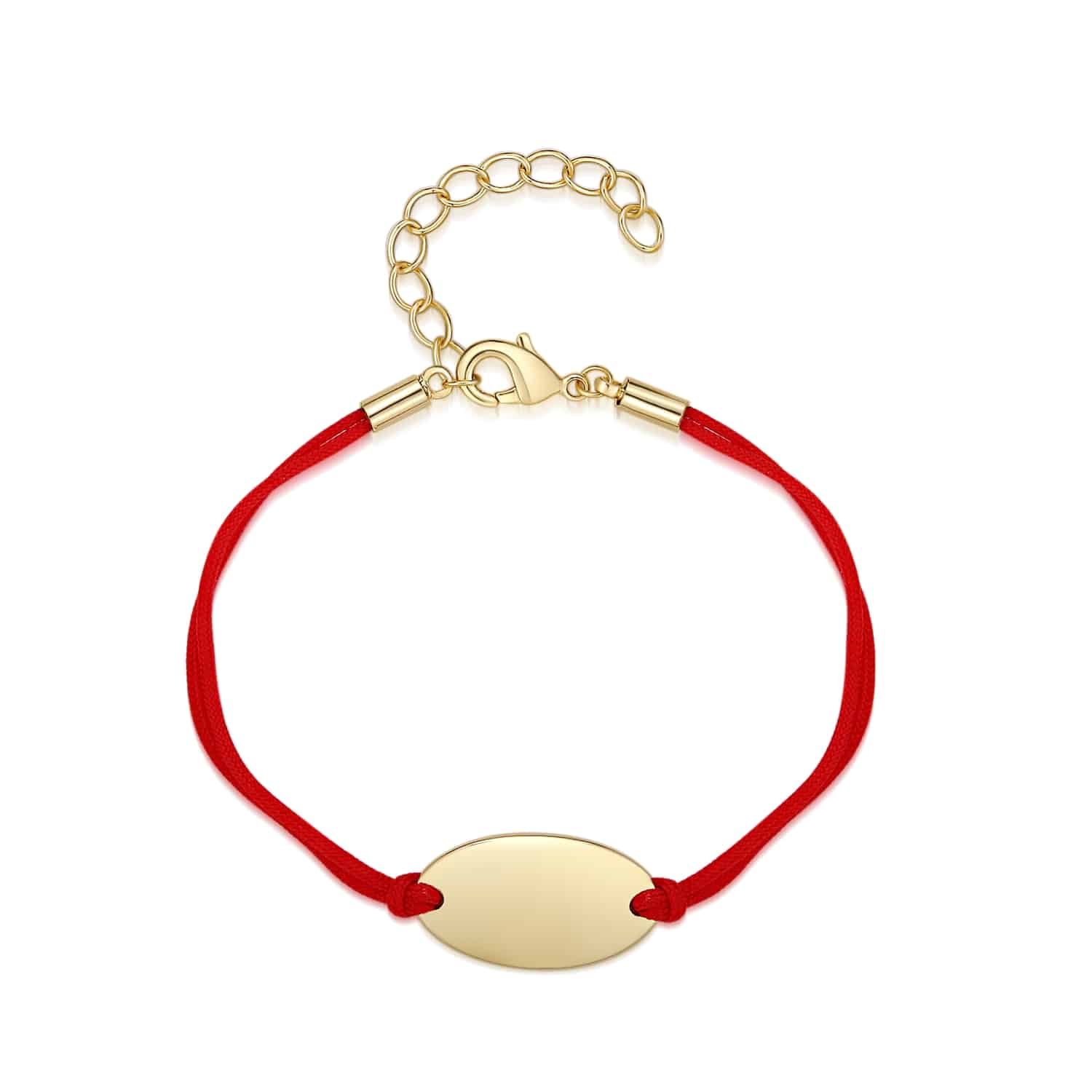 צמיד טרנדי מצופה זהב משולב עם טס לחריטת שם בצורת אליפסה