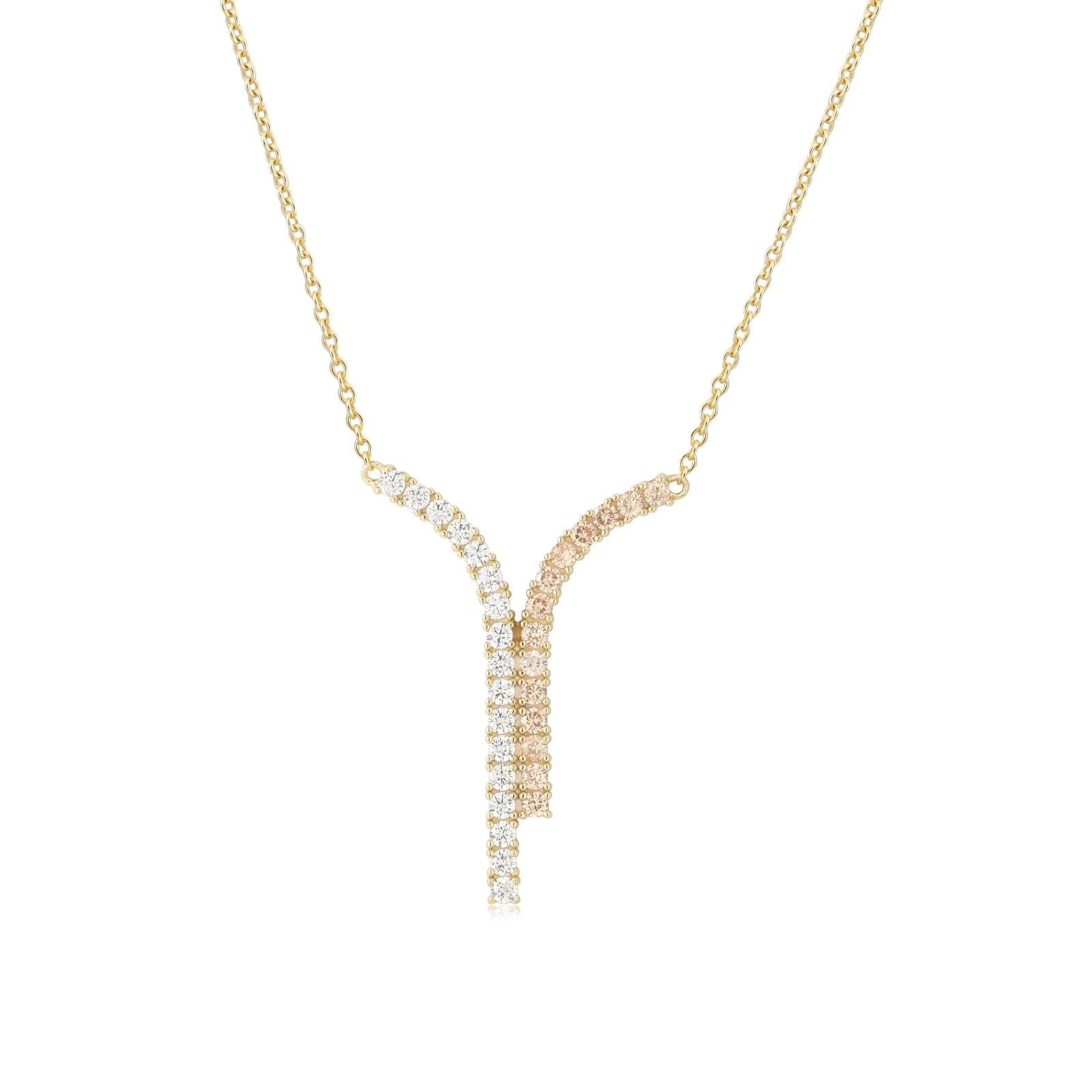 שרשרת טניס כסף טהור טבול בזהב צהוב משובץ זרקוני לייזר משולב שקוף וורוד