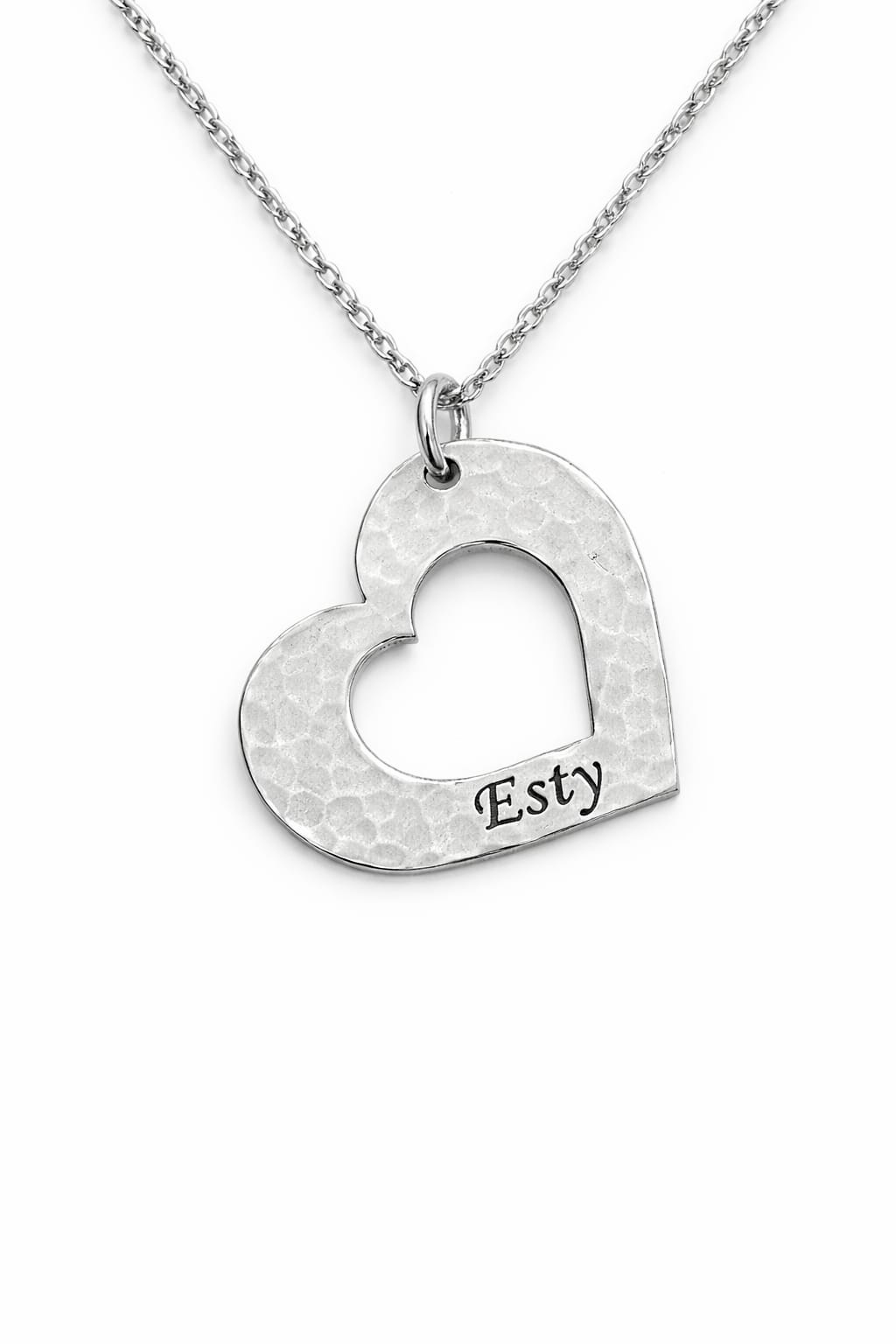 • שרשרת מסגרת לב מחוספס עם חריטה+
