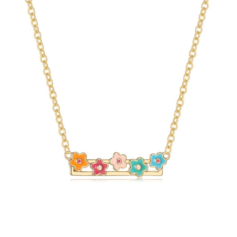 שרשרת כסף טהור מצופה זהב משולב פרחים עשויים מאמייל