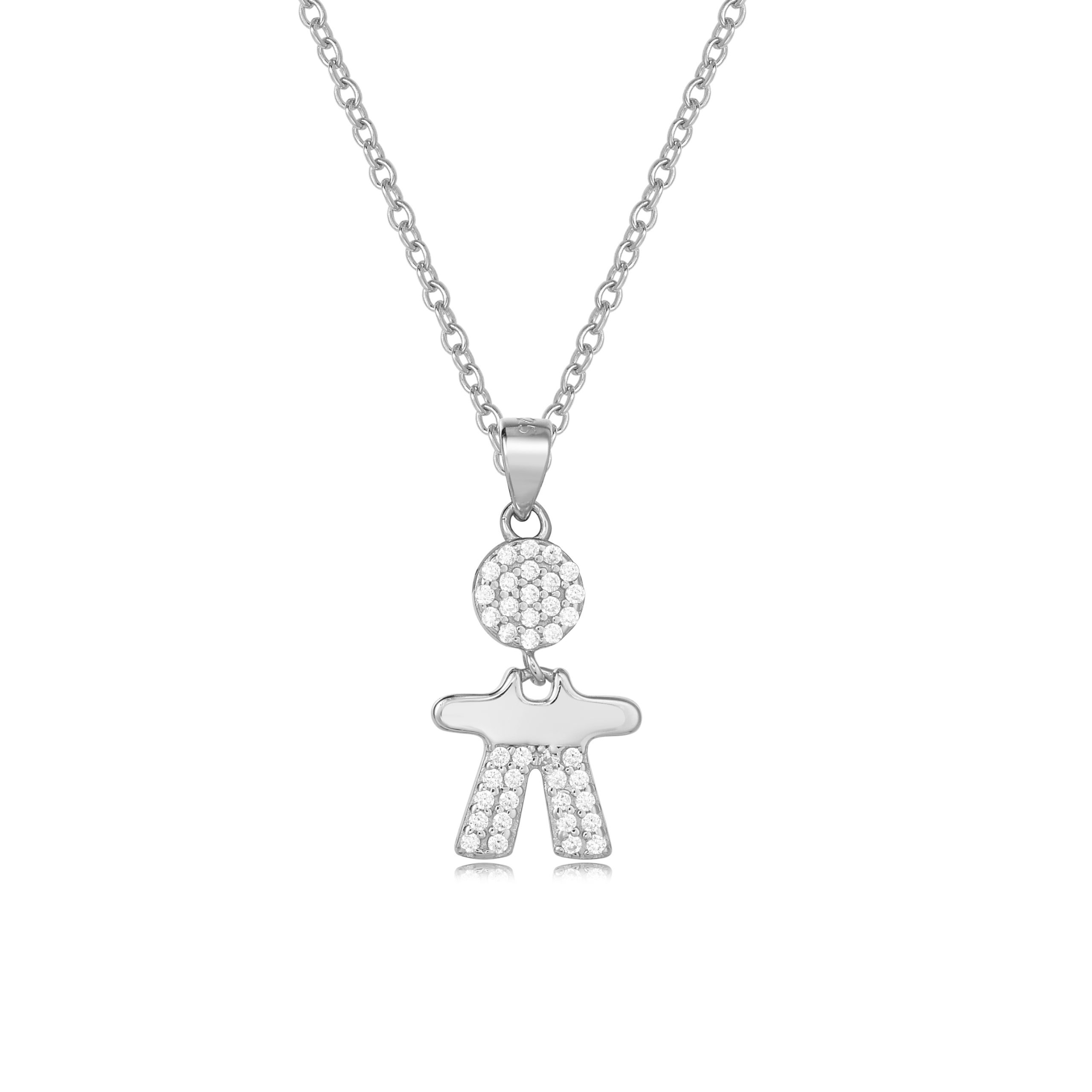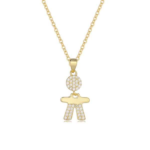 שרשרת צורת ילד מנצנצת משובצת אבני זירקון זהב גימור עבודת יד כסף טהור.