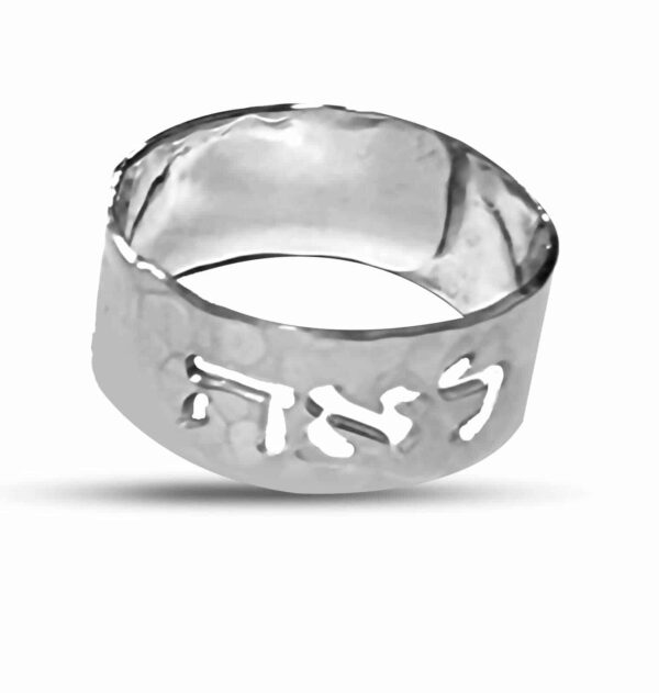 טבעת כסף עשויה בגימור עבודת יד טבול בזהב לבן עם שם חלול לבחירה אישית