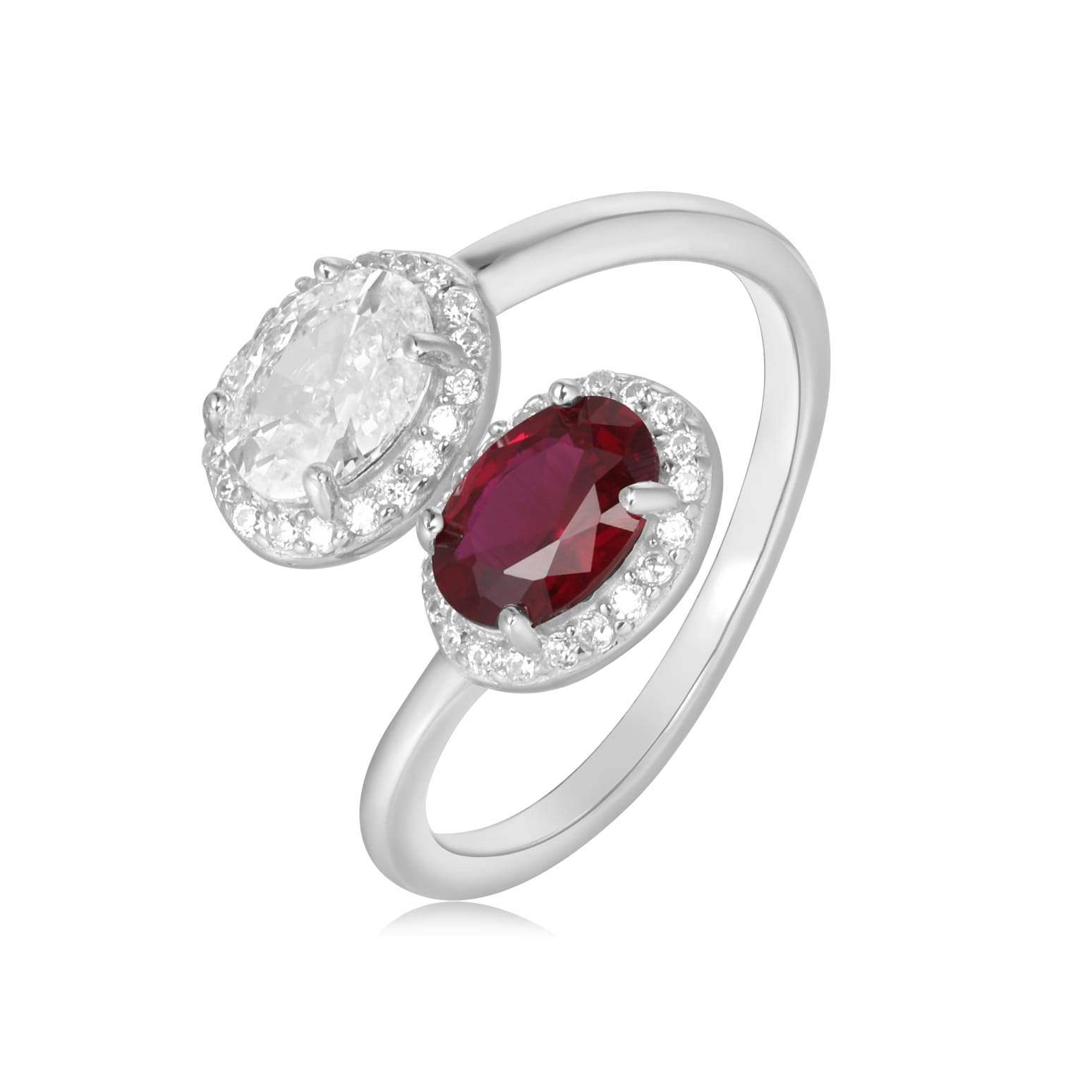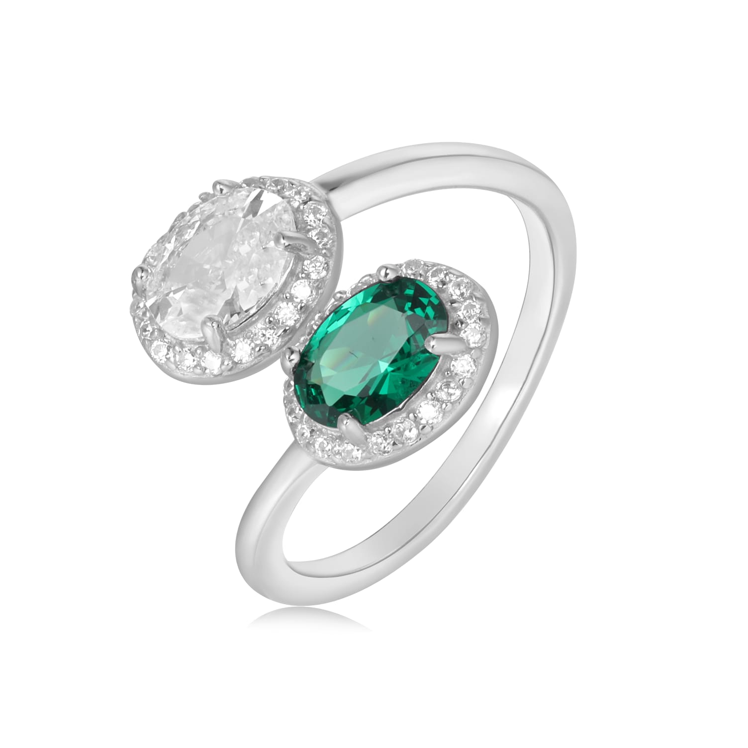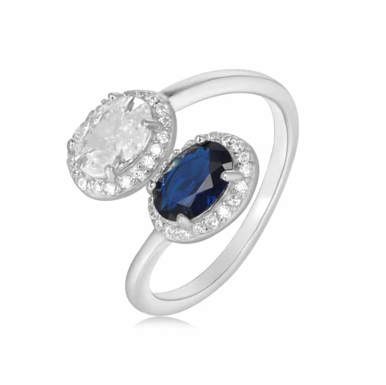 טבעת כסף טהור טבול בזהב לבן בשיבוץ זרקון לייזר שקוף וזרקון צבעוני