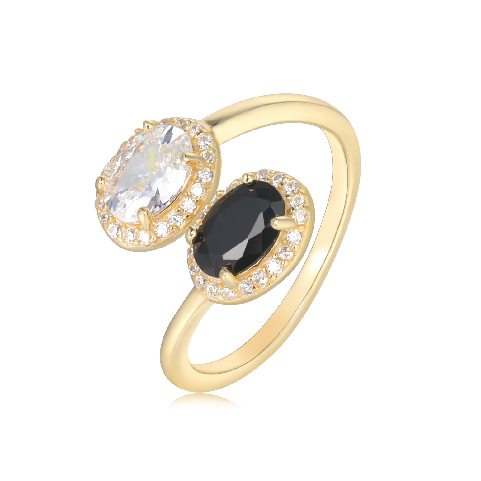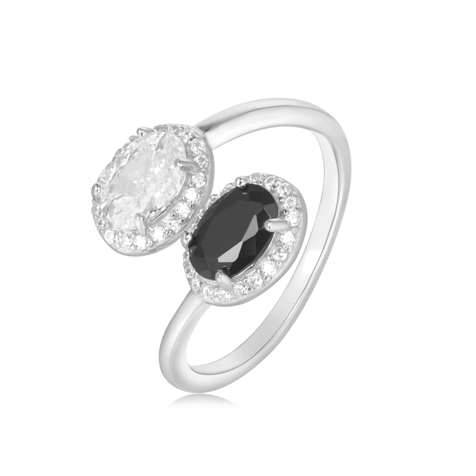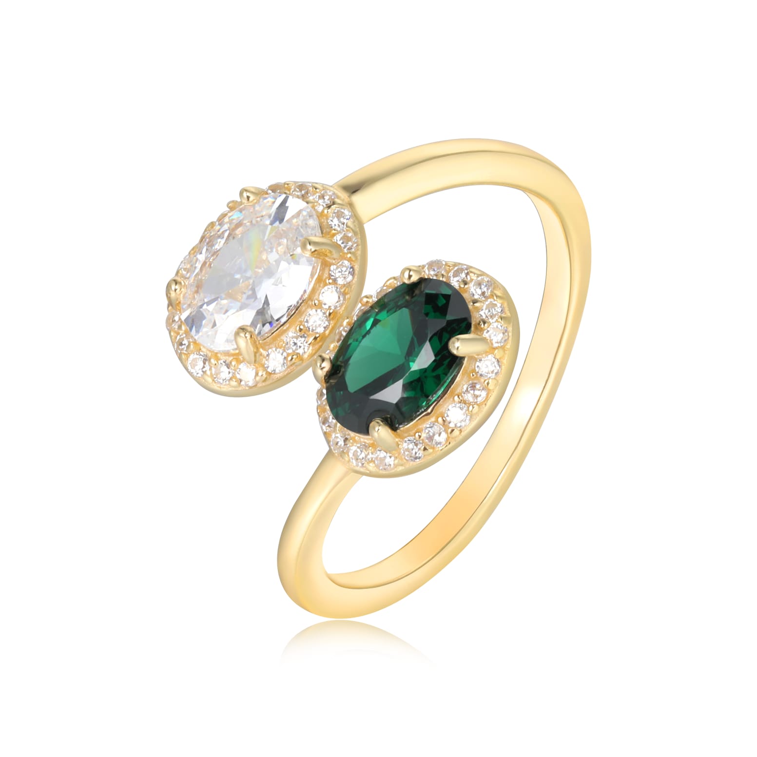 טבעת כסף טהור טבול בזהב לבן בשיבוץ זרקון לייזר שקוף וזרקון צבעוני