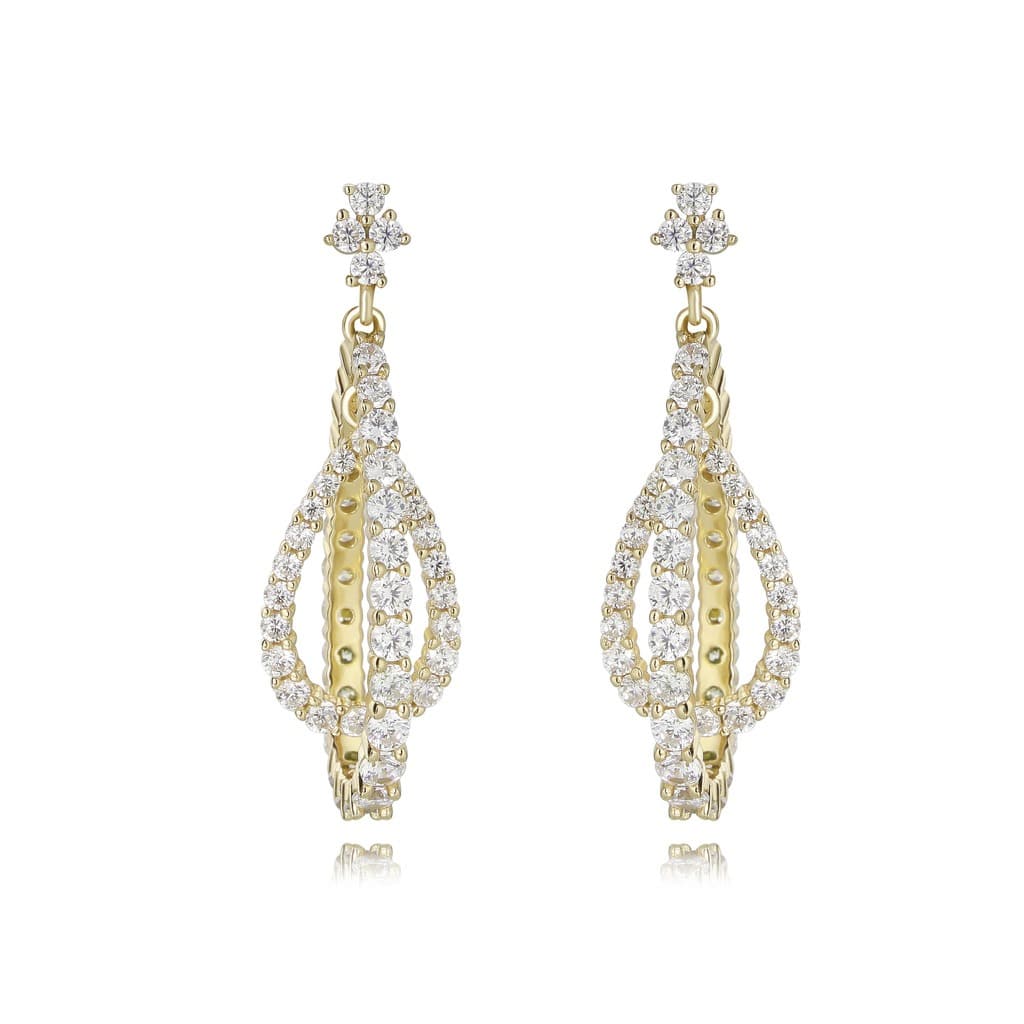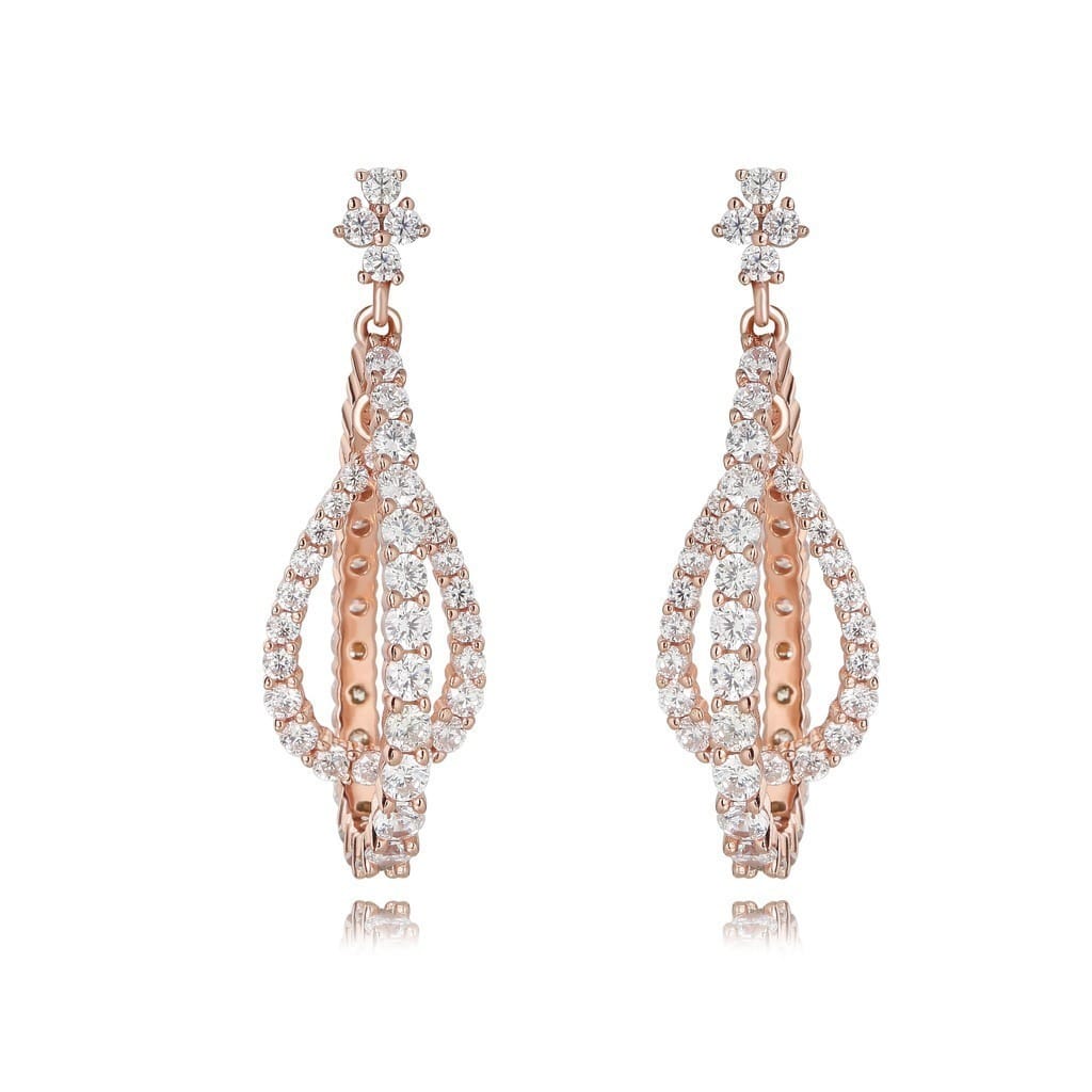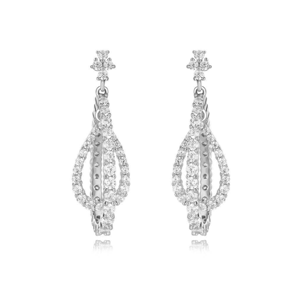 עגיל נופל טיפה כפול גימור בעבודת יד כסף טהור עם שיבוץ אבני זירקון שקופות