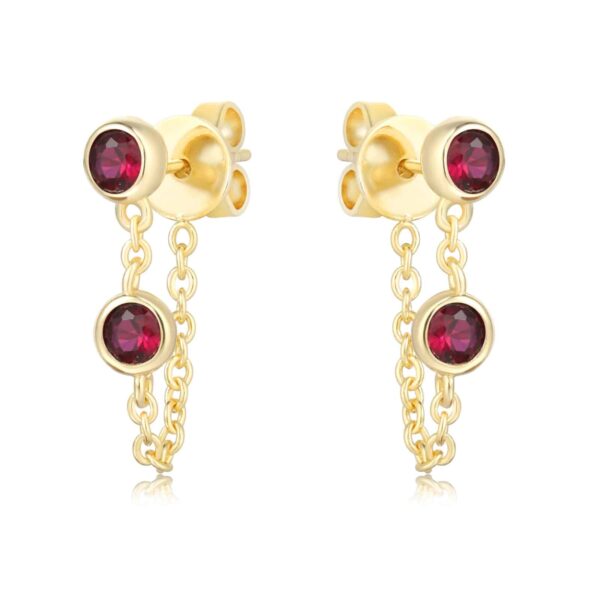 עגיל כסף טהור טבול בזהב בשיבוץ אבני זרקוניה אדומים