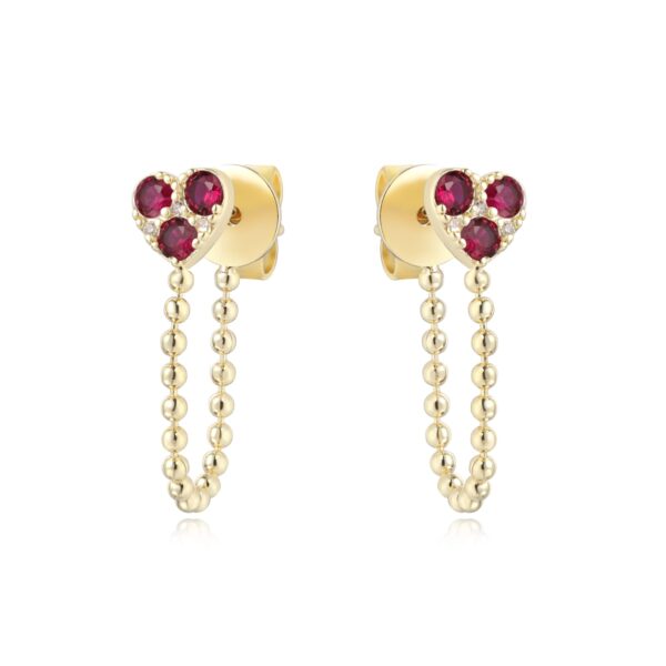 עגיל כסף טהור טבול בזהב בשיבוץ אבני זירקוניה אדומים בצורת לב