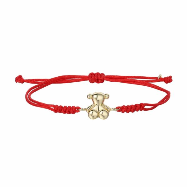 צמיד חוט אדום עם תליון דובי זהבי טבול בזהב טהור