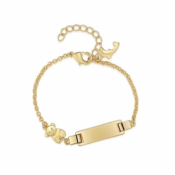 צמיד מצופה זהב עם טס לחריטה משולב דובי זהב חלק