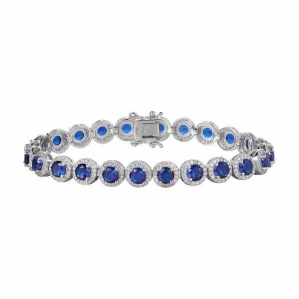 צמיד עיגולים כסף שיבוץ כחול משובצים באבני זירקון שקופים גימור עבודת יד כסף טהור.