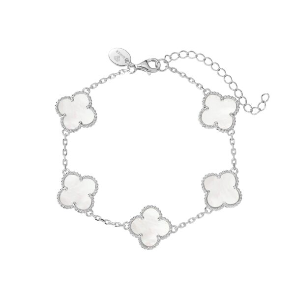 צמיד פרחים לבן משובץ זרקוני שקופה, גימור עבודת יד, כסף טהור.