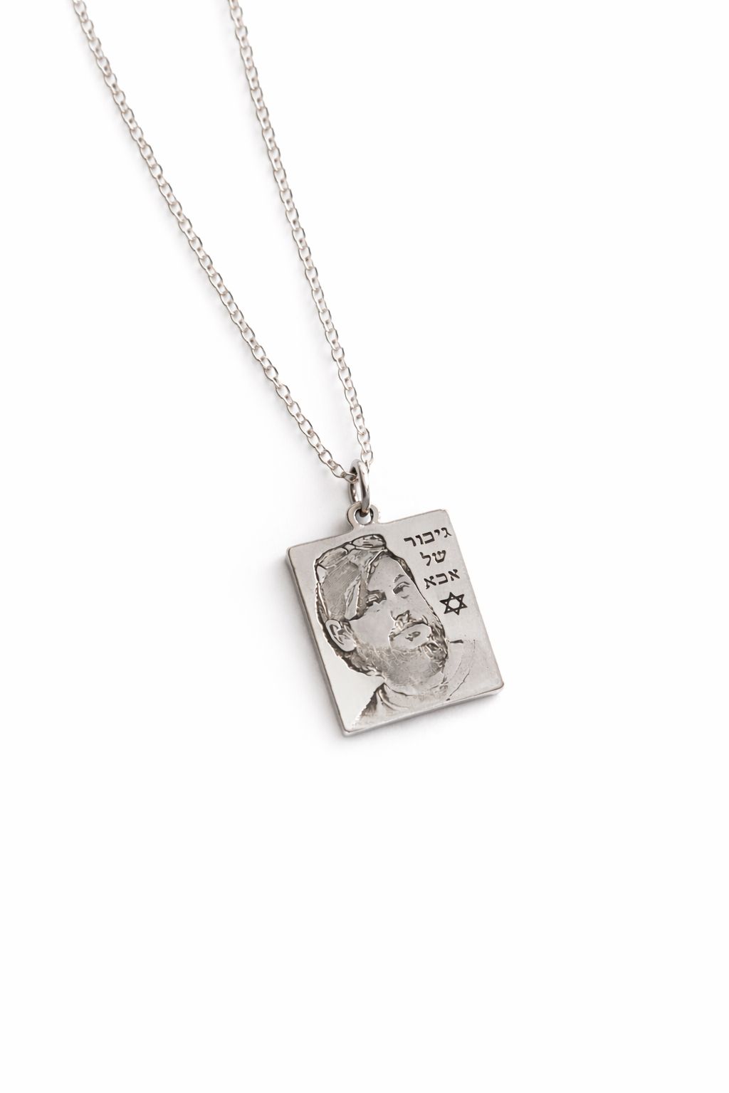 שרשרת זיכרון טס כסף טהור עם חריטת תמונה בצורת מרובע