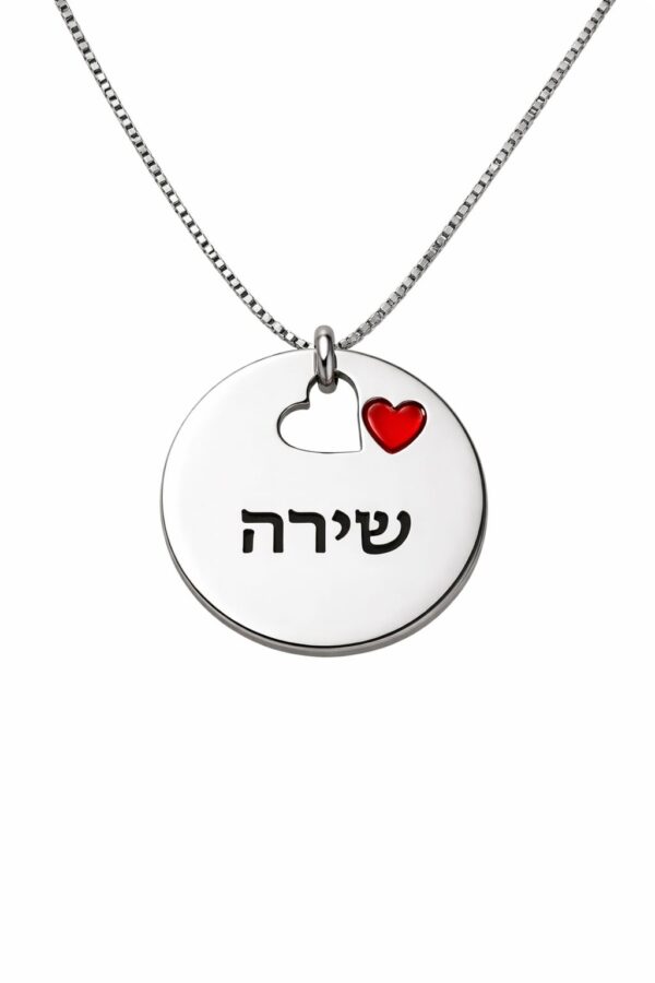 • שרשרת עיגול hadaya לחריטה עם לב אדום+