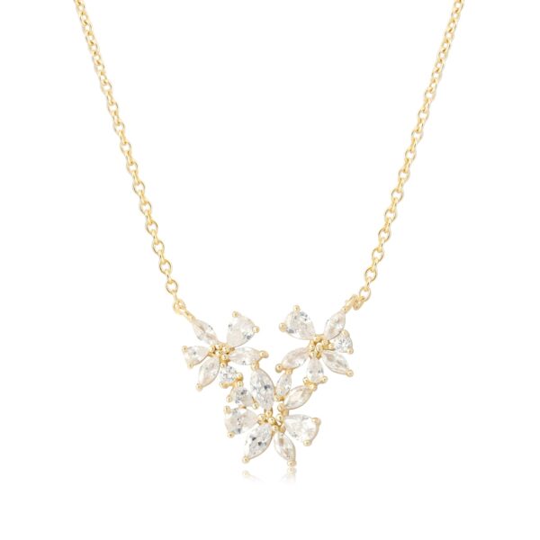 שרשרת כסף טהור עם תליון משובץ בזרקוני לייזר בצורת פרחים
